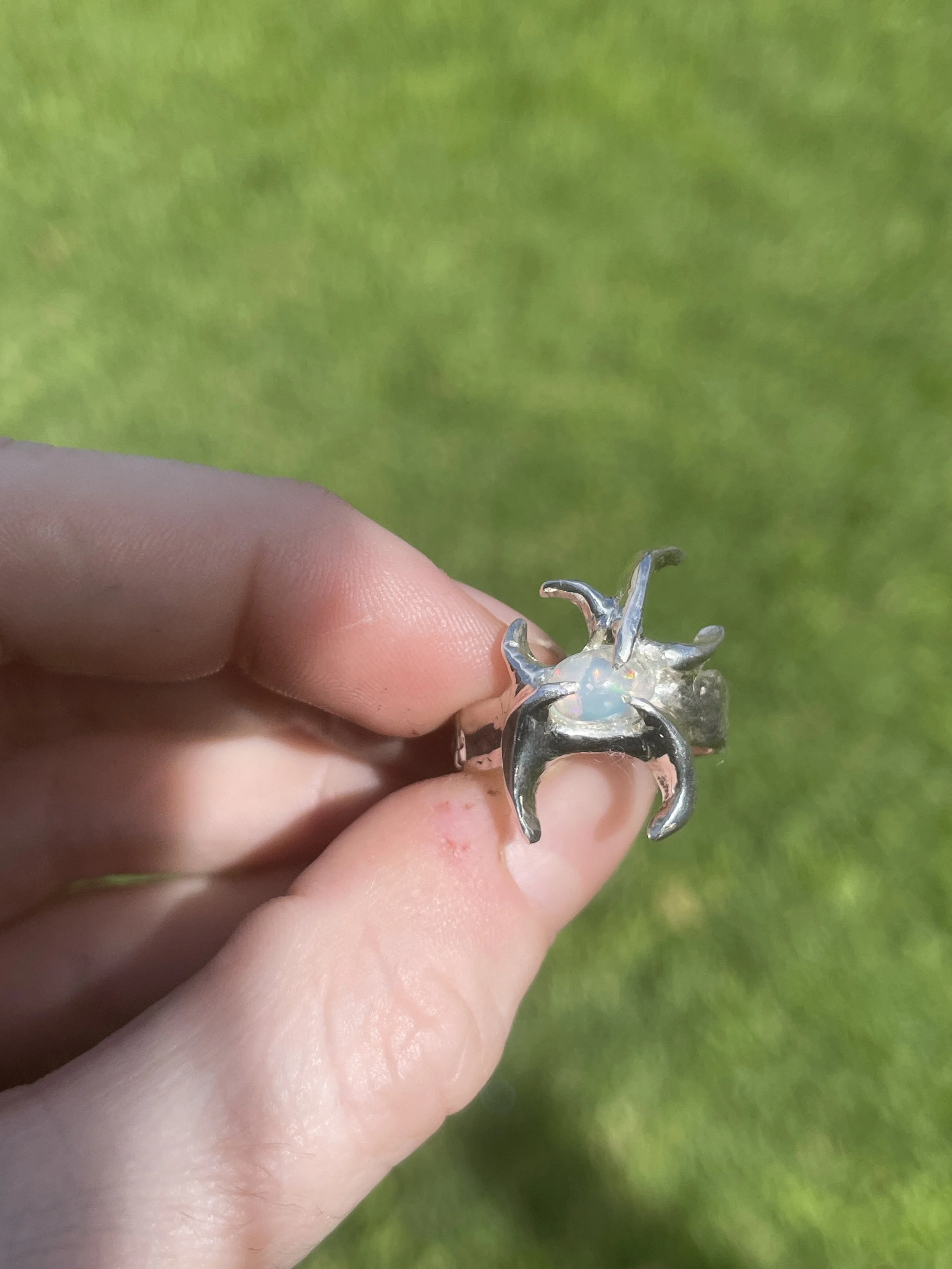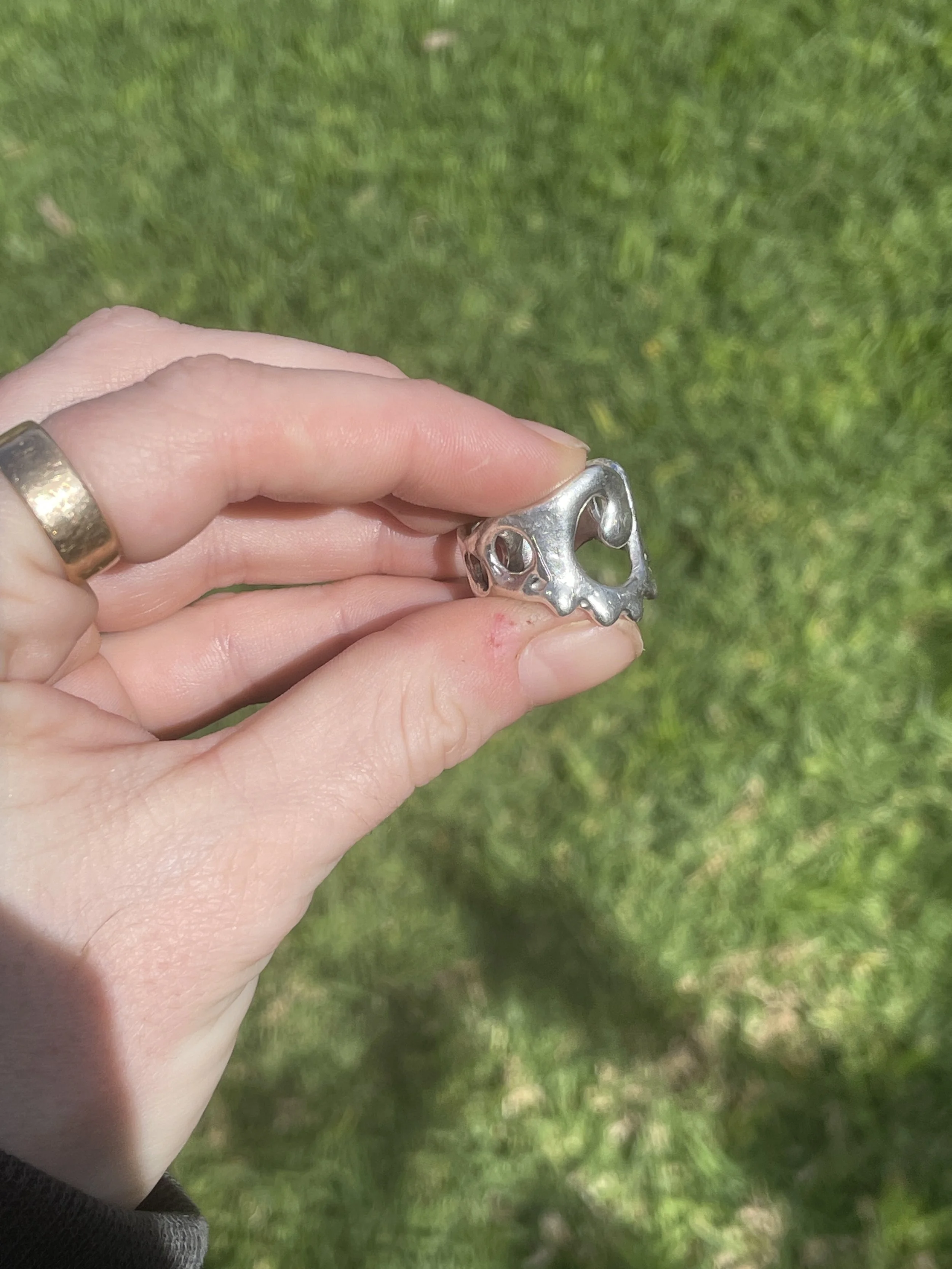 Orange cubic zirconia set in sterling silver. Worry free ring; wear in ocean & pools (no green fingers)